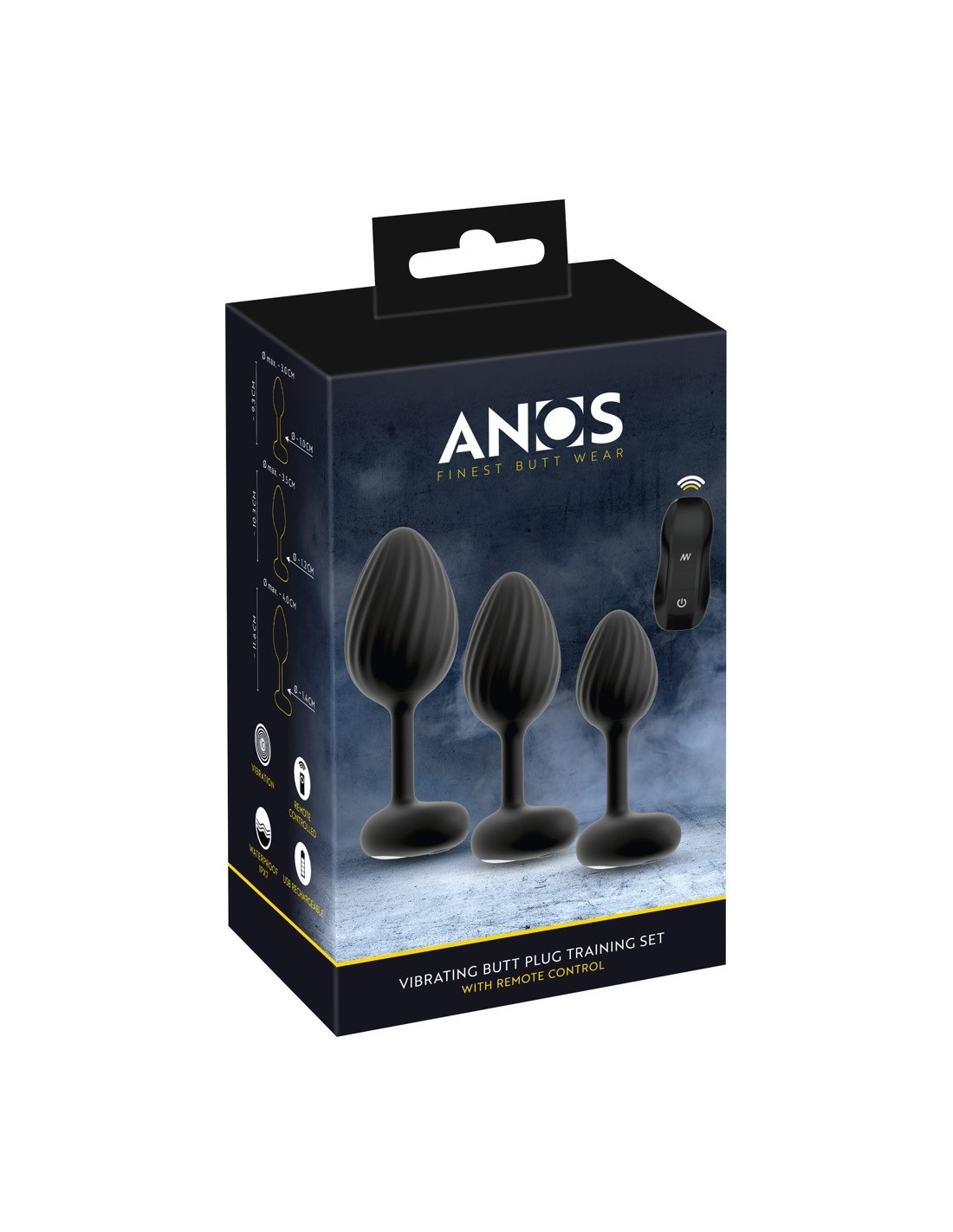 Descubre el set de butt plugs RC ANOS con vibración, diseñado para llevar el placer anal a un nuevo nivel. El kit incluye 3 plugs vibrantes de diferentes tamaños, ideales tanto para el placer rectal como para un estimulante entrenamiento de stretching, adaptándose a cada nivel de experiencia.